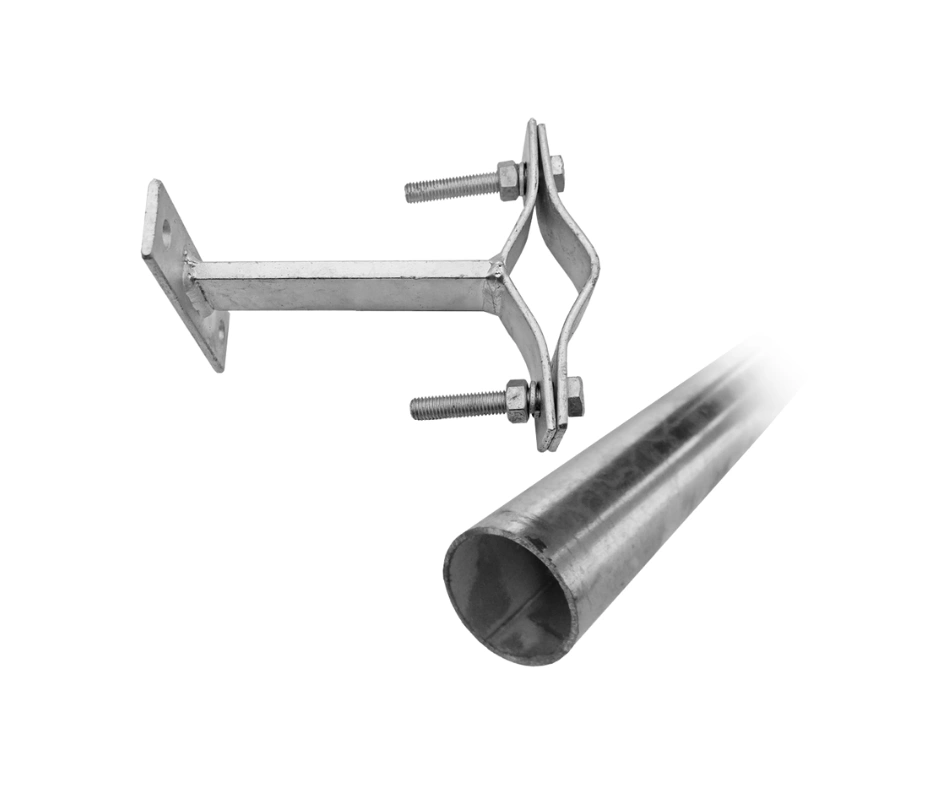 The mast is a 3 metre pole and the bracket is used to fix the mast to the wall.